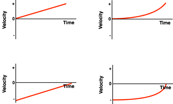 In the second and third graph the graphs show uniform acceleration as the velocity is increasing at a constant rate. As clear from the graph the velocity is constant c throughout the time interval. Speed-time graphs can be used to represent motions involving speed and uniform.